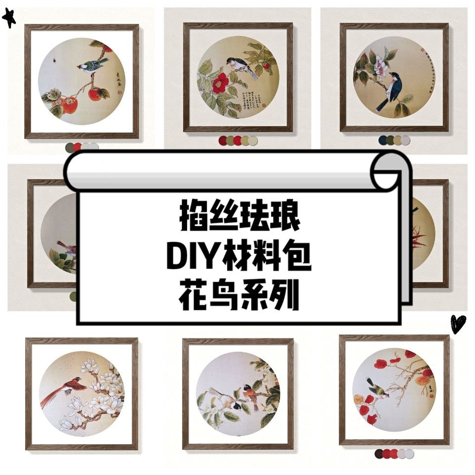糸を絞めたエナメル画diy景泰青工芸画手作り材料セット金糸彩沙画花鳥