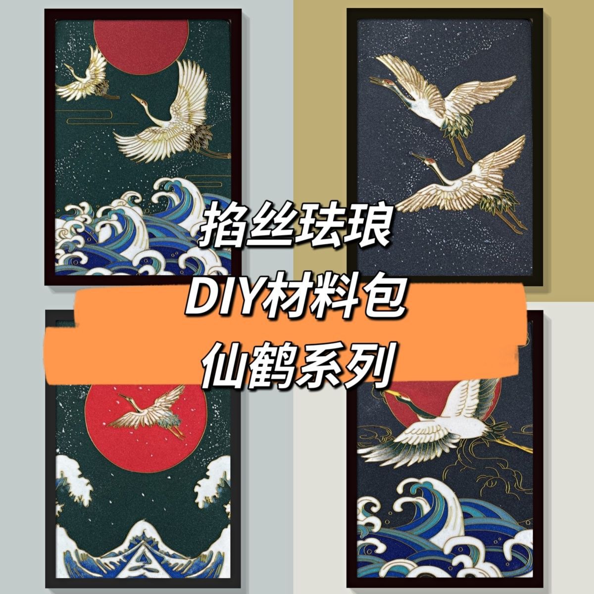 景泰藍風仙鶴糸エナメル画diy手作り材料包錦鯉金糸砂画非遺品手作り