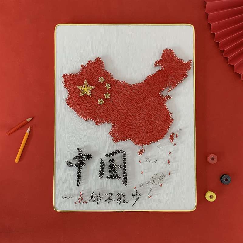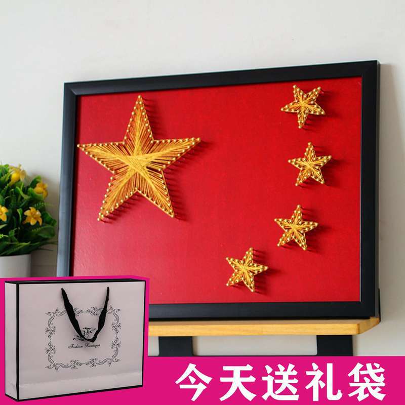 五星紅旗釘線画国慶節手作りdiy材料包完成品愛国テーマ立体弦糸画