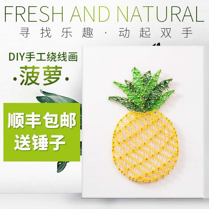 襟典diy四葉緑植パイナップル手作り釘画手作り糸画釘巻線画