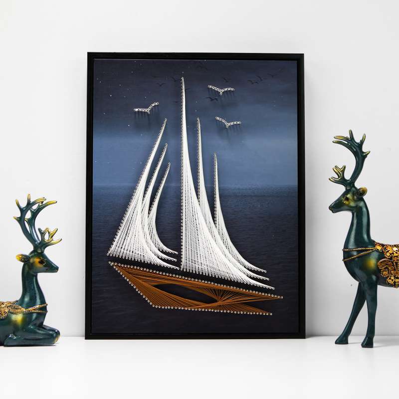 弦糸画diy手作り材料包釘巻線画帆船作糸客間装飾画ins