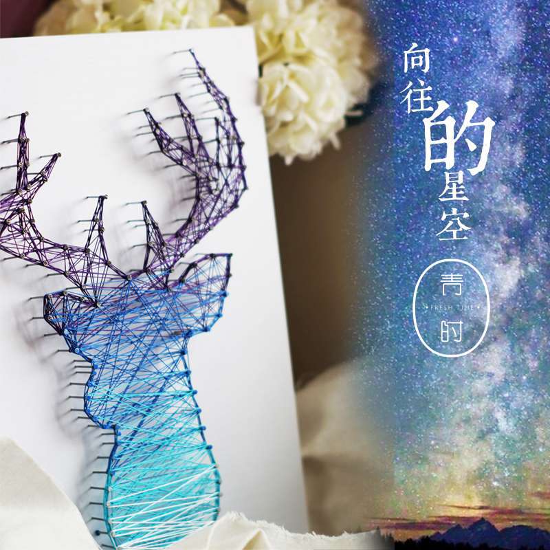 北欧鹿頭星空装飾画糸画立体釘巻線装飾画手作りdiy材料包郵便