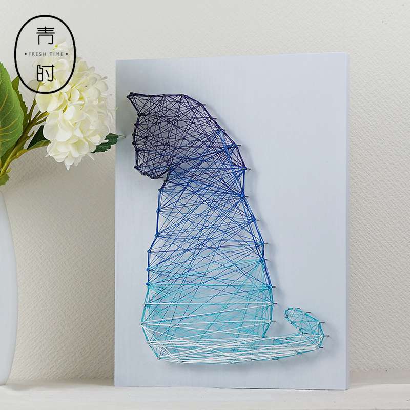星空猫北欧糸画立体釘巻線画置物手作りdiy材料包郵便
