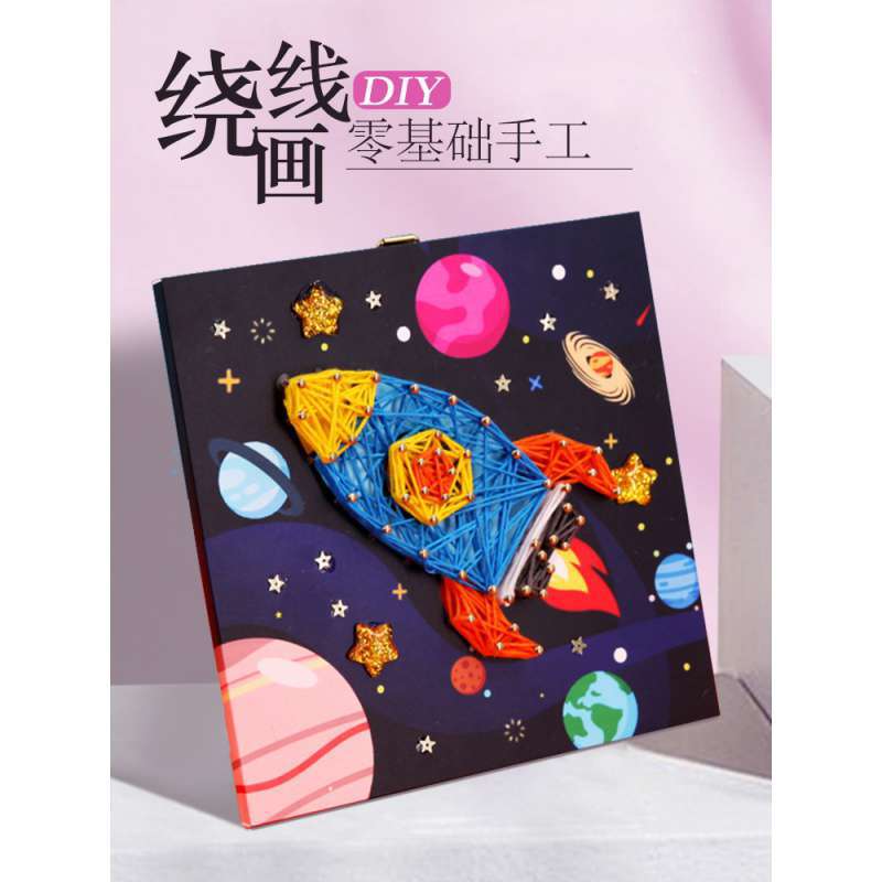 くぎ糸は宇宙飛行士のくぎを巻いて線を巻いて手でdiyして子供の部屋の装飾を作って彼氏に送ります。