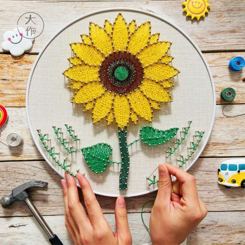 ひまわり釘線画学生手作りdiy材料包カップル緑植太陽花弦画