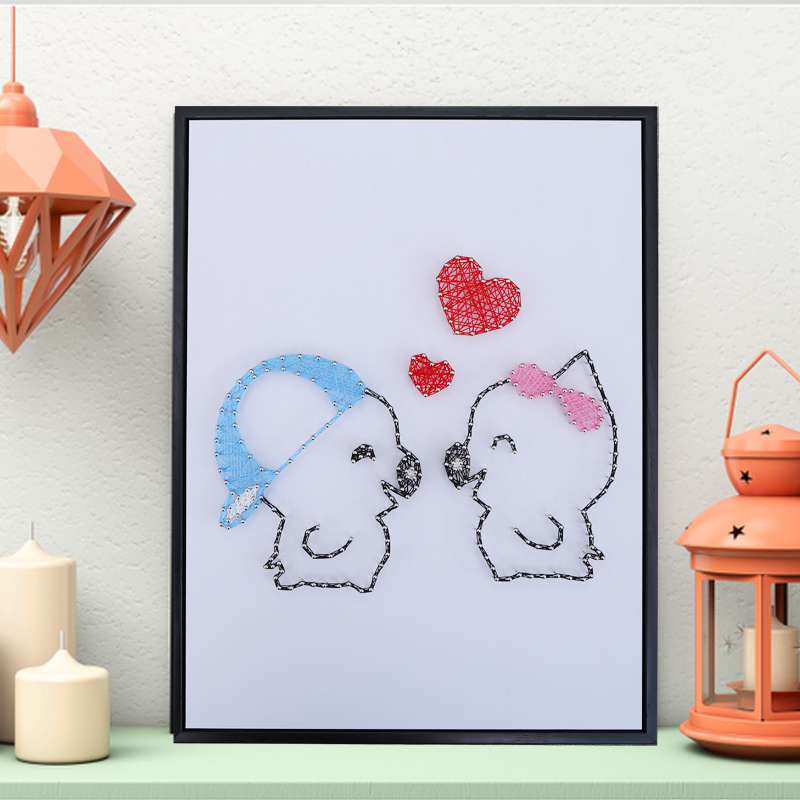 くぎ巻き線画カップル豚手作りdiy制作創意立体動物巻き減圧糸画弦糸画
