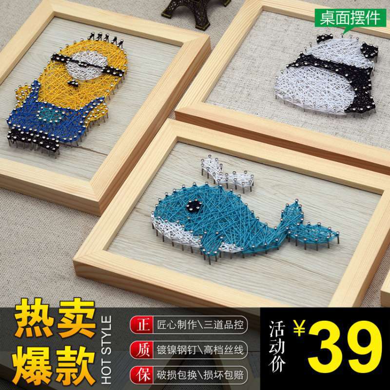 希風糸画diy材料包手作り誕生日北欧弦糸装飾画釘立体巻線画