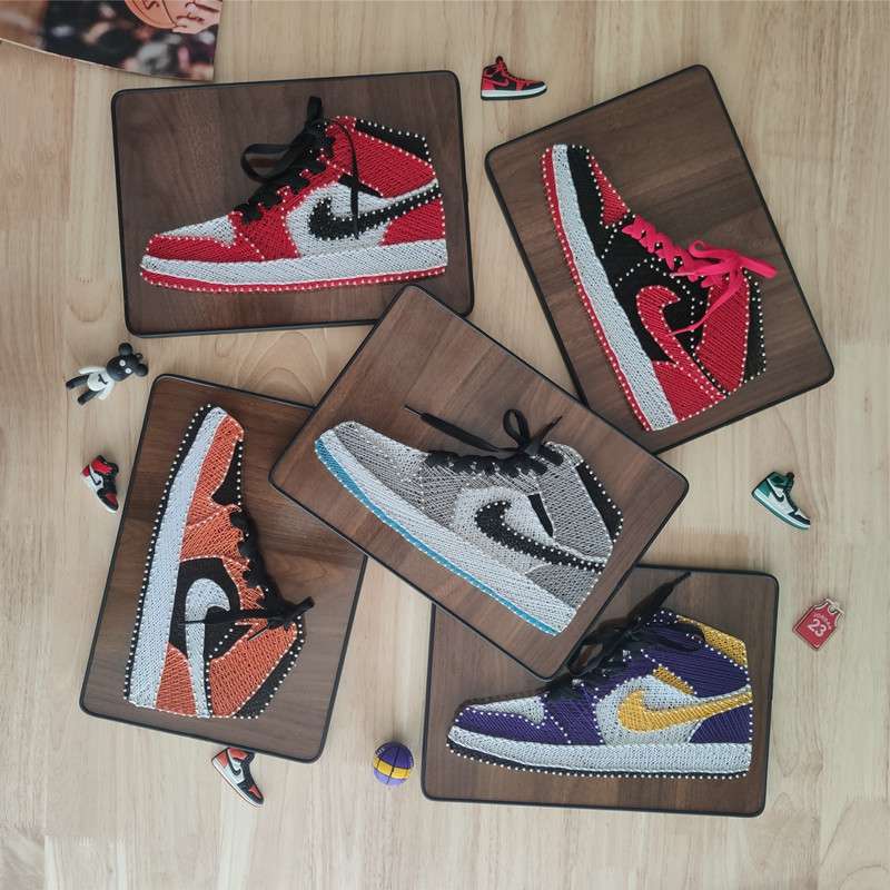 Ajクラシックシューズのくぎの巻き絵は自分で手作りします。