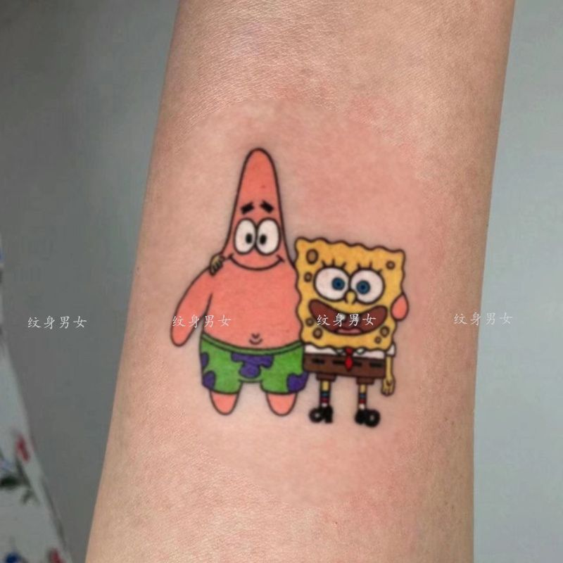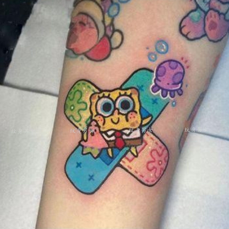 スポンジボブの小さなタトゥーステッカー漫画かわいい学生インスタイル男性と女性甘くてクールな手首カバー傷跡楽しい