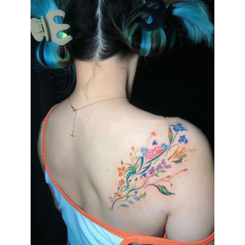 春の見栄えの良い青い花のカラータトゥーステッカーインスタイルフレッシュハイエンド防水甘くてクールな女の子シミュレーション