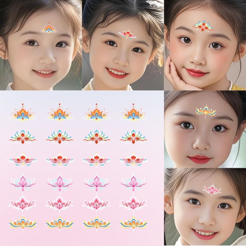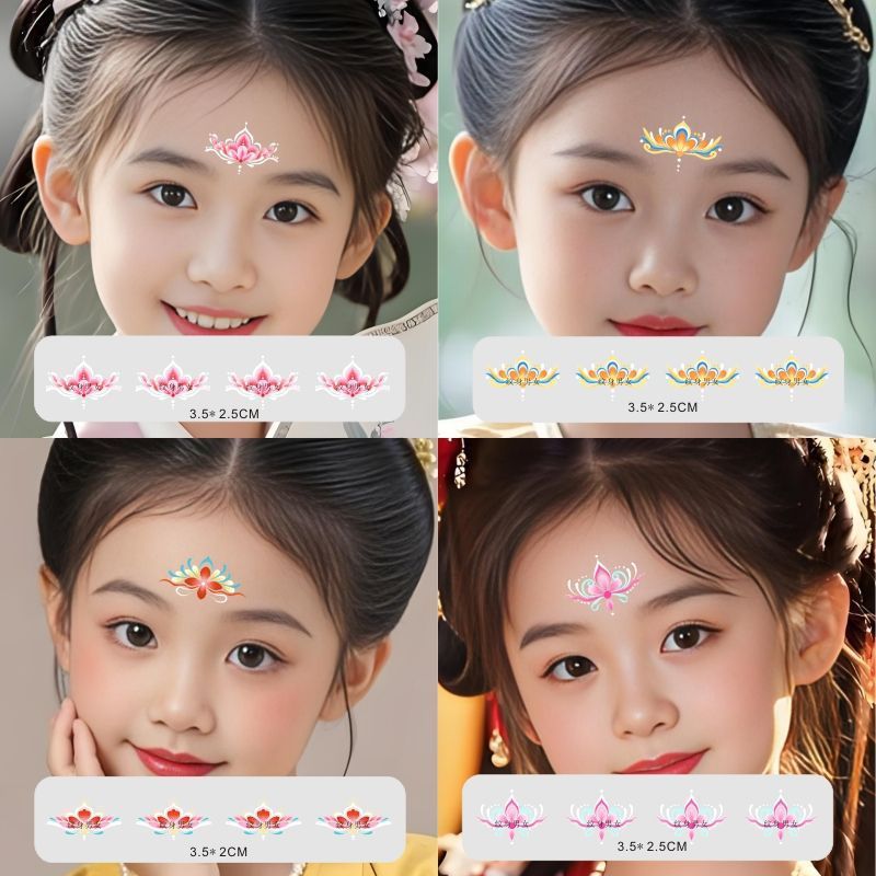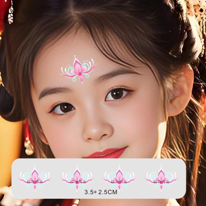 子供用古代風花額ステッカー、ホリデーショーフェイスメイク額ステッカー、漢服衣装ステッカー