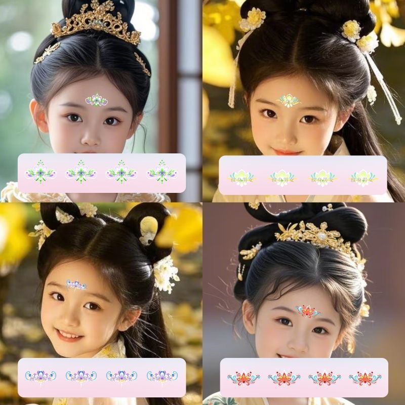 漢服古代衣装子供の眉毛ステッカー漢服花額ステッカー古代スタイルの女の子の古代衣装額ステッカー