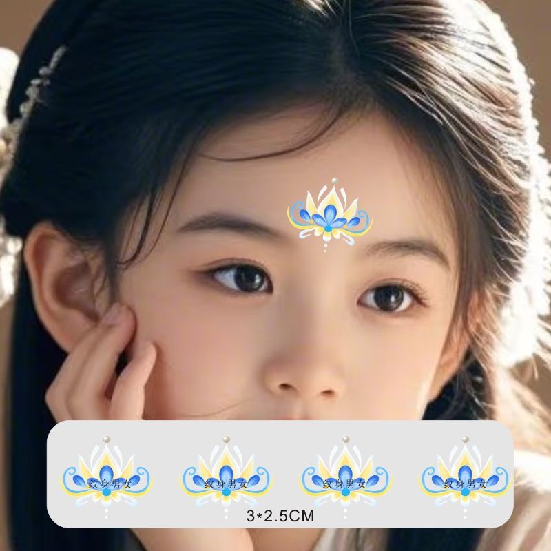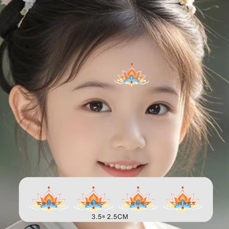 子供の眉毛ステッカー額ステッカー防水ステージパフォーマンス古代スタイルプリント学生漢服古代衣装女性額ステッカー