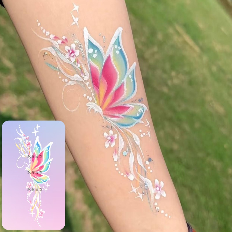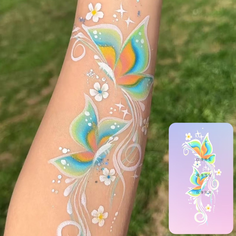 子供のかわいい蝶の塗装タトゥーステッカー額愛レインボープリントホリデーかわいい音楽祭ステッカー
