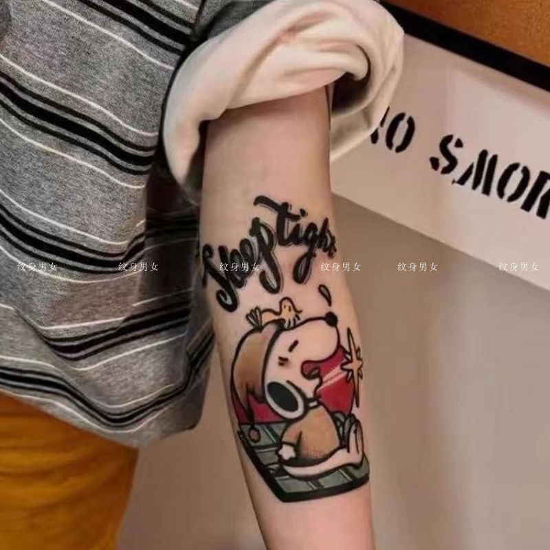 オールドスクールカラー漫画スヌーピーアームスプライシングフラワーアームカラーのタトゥーステッカー女性用防水と長持ち