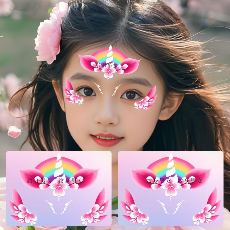 【子供用プリンセスステッカー】虹の花 ユニコーン塗装額と目元ステッカー ブレスレットフラワータトゥーステッカー