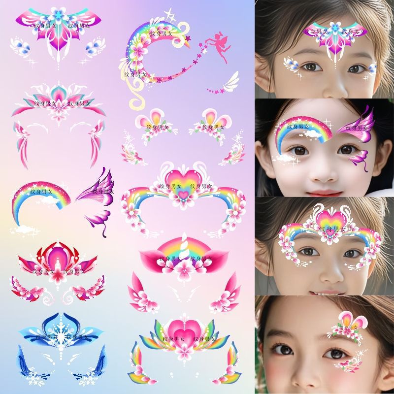 【子供用プリンセスステッカー】虹の花の妖精蝶塗り額と目尻ステッカーブレスレットフラワータトゥーステッカー
