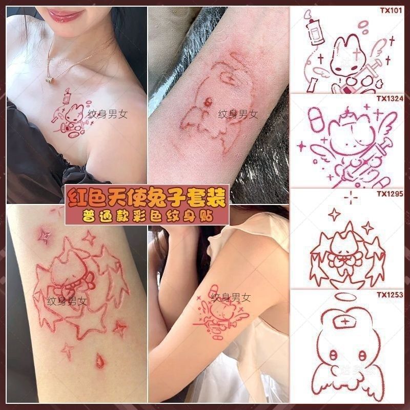 赤い天使のウサギ、キュートでパーソナライズされたソーシャル、見栄えの良いカラーのタトゥーステッカー、ニッチな新しいトレンド、ホットなインターネットセレブ