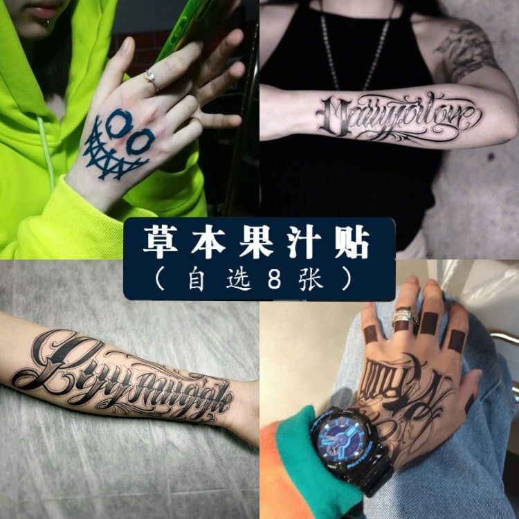草本ジュース日本語いつまでも楽しいタトゥー防水持続性男女腕腕シール日本式潮
