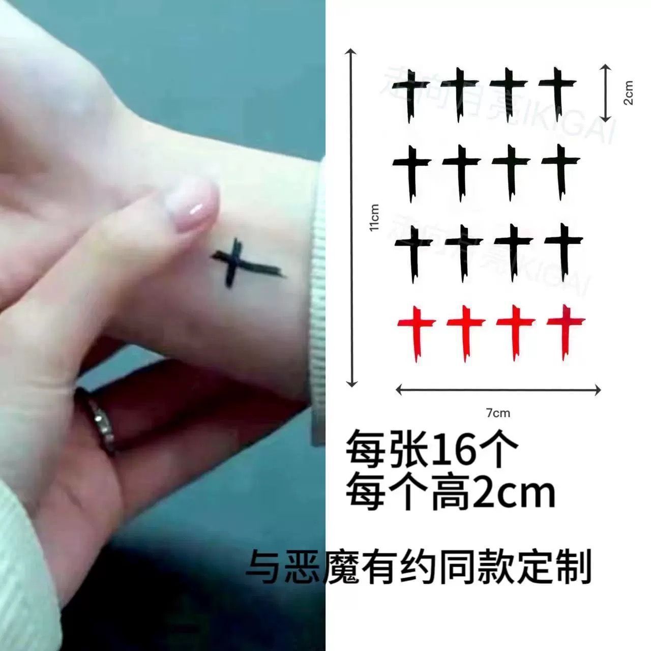 韓劇の悪魔の契約の手首の十字の紋章は防水の持続的な赤と黒の男女の個性のシミュレーションの小さい図案を貼ります。