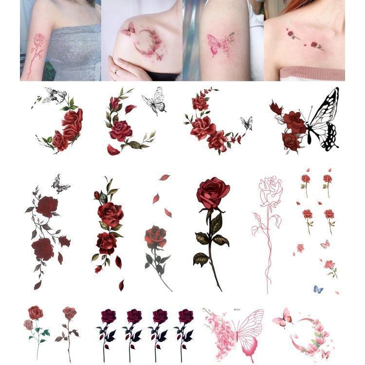 赤いバラのタトゥーは少女のタトゥーを貼って美しいセクシーな鎖骨の肩口の足首のタトゥーを貼ります。