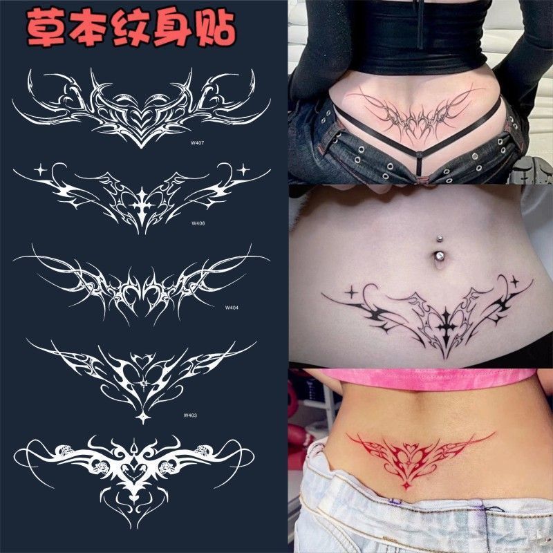 ギャルの愛のトーテムの太ももの背中の胸の前の高級感のクールな草本のジュースの紋章は半魅魔の印を貼ります。