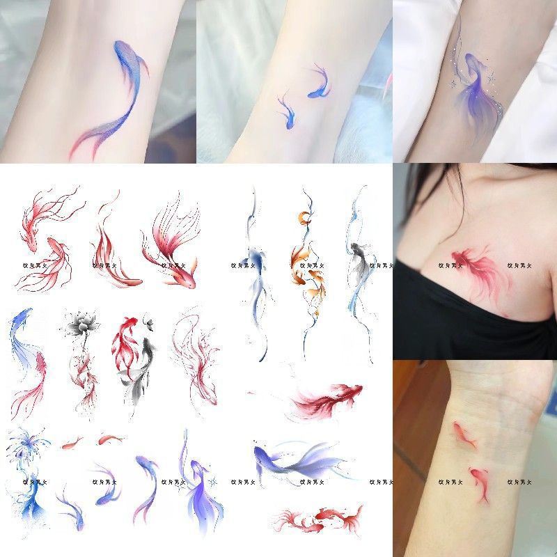 青い錦鯉カラーの刺青は女性の持続的な高級感を持ちます。