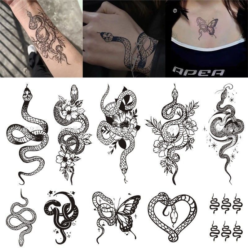 ネットの赤い同タイプの腕の蛇は花の紋章を巻いてジュースの草本の蝶の蛇の指の鎖骨の刺青の防水の持続する潮を貼ります。