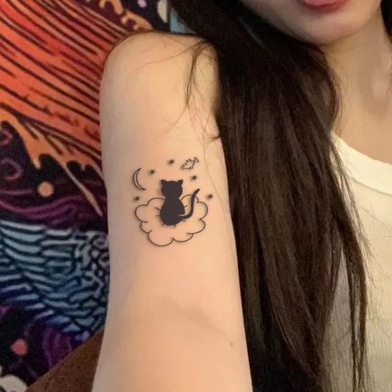 草本ジュース星空雲猫潮クールタトゥー貼り持続防水腕鎖骨シール猫爪リアル