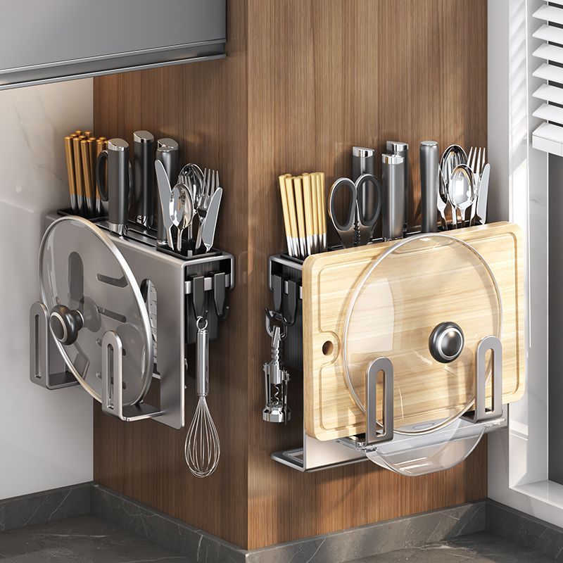 キッチンラック、パンチフリー、家庭用壁掛けナイフホルダー、収納品、包丁、まな板、箸、ナイフ、鍋蓋ラック