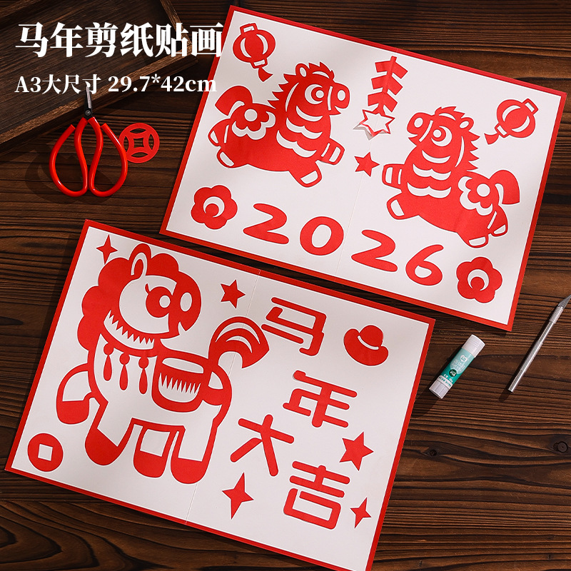 2026年馬年子供向け春節切り紙DIY手作り材料新年民俗伝統窓飾り中国風切り紙
