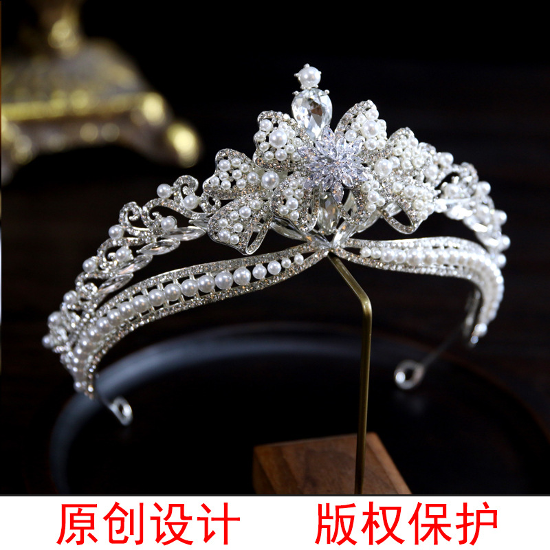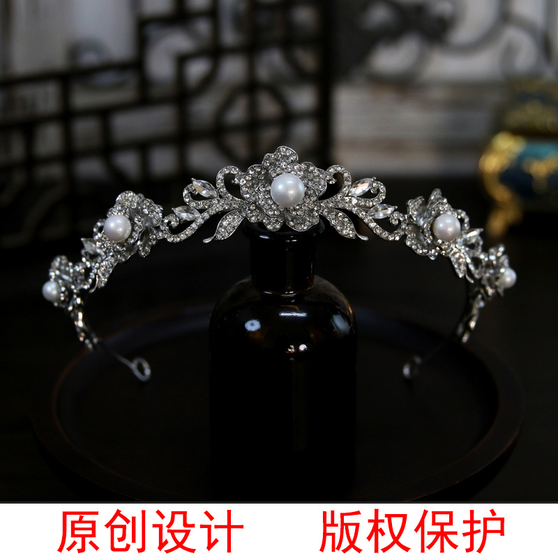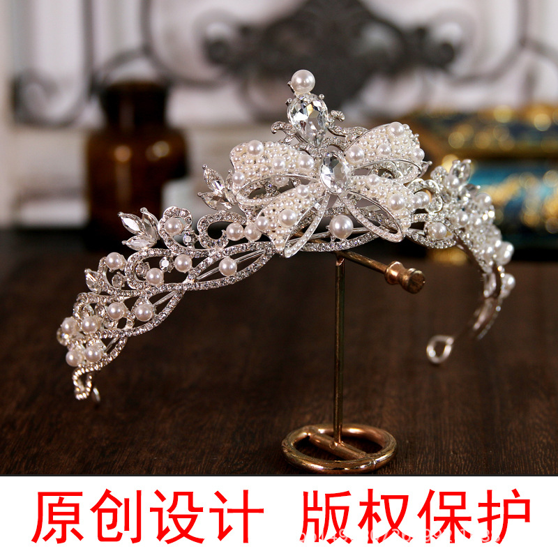 パール新バロックヘップバーンスタイルブライダルクラウンティアラリボン誕生日クラウンヨーロッパレトロ結婚式