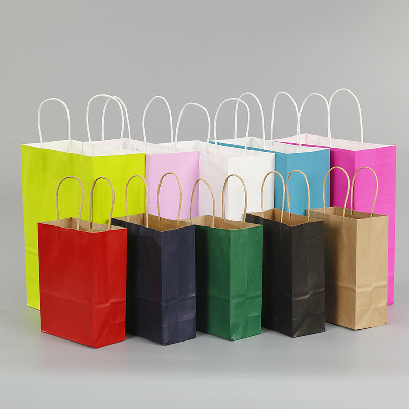 カラー手提げ袋クラフト紙袋カスタム販売包装袋クラフト紙収納袋服装ギフト袋カスタム