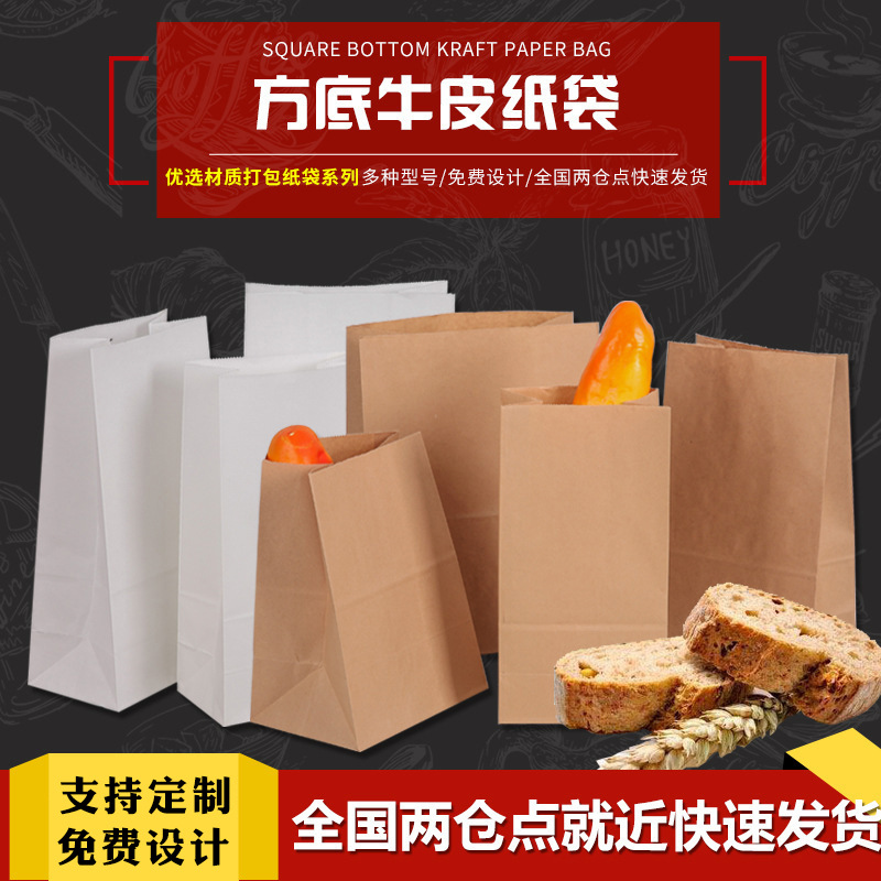 現物特厚防油使い捨てクラフト紙袋トーストパン食品袋収納販売クラフト紙包装袋