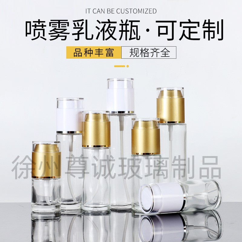 プッシュ式噴霧ローションボトル透明ガラス空ボトル携帯化粧品ボトルエッセンス分注ボトルエッセンシャルオイルボトル