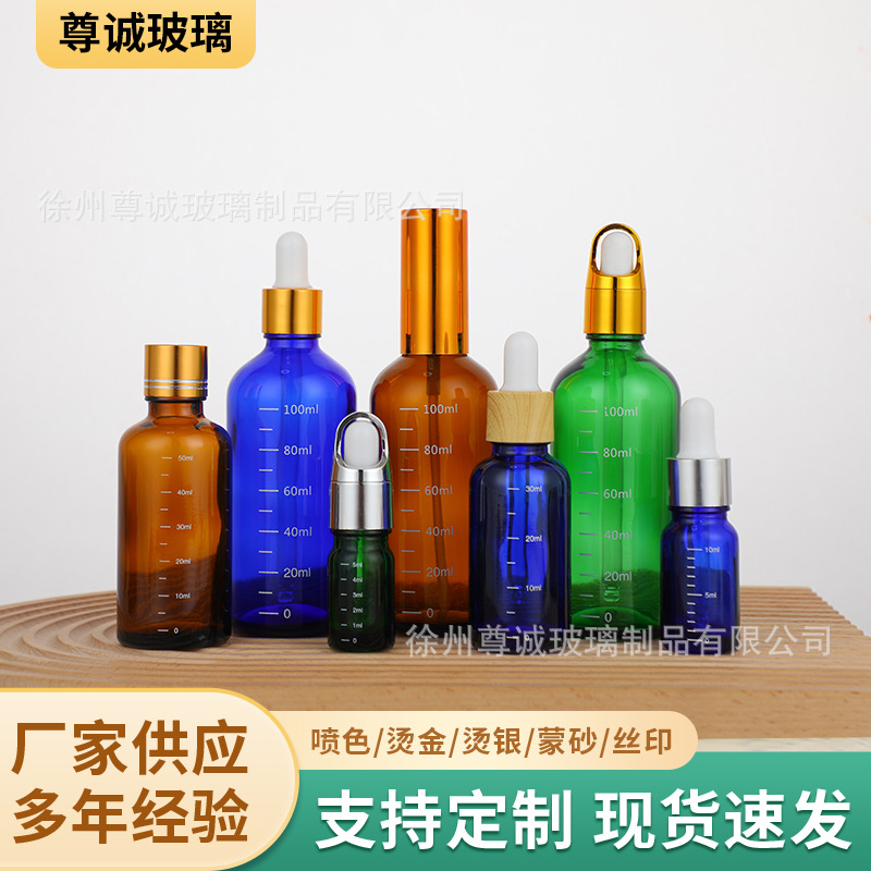 現物精油瓶蒙砂ガラス空瓶茶色避光スポイト瓶精華瓶化粧品分注瓶平肩瓶