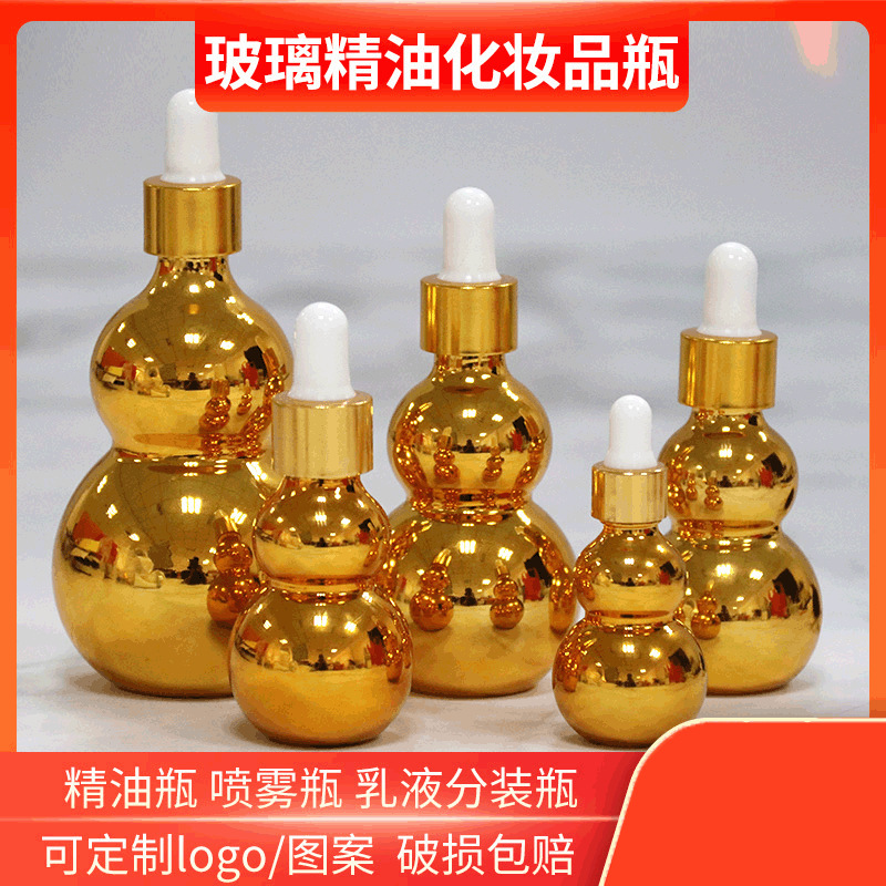 現物はヒョウタンの精油の瓶を供給して金メッキのガラスのゴムの滴管の瓶の化粧品の瓶の精華の乳液を分けて瓶を詰めます。