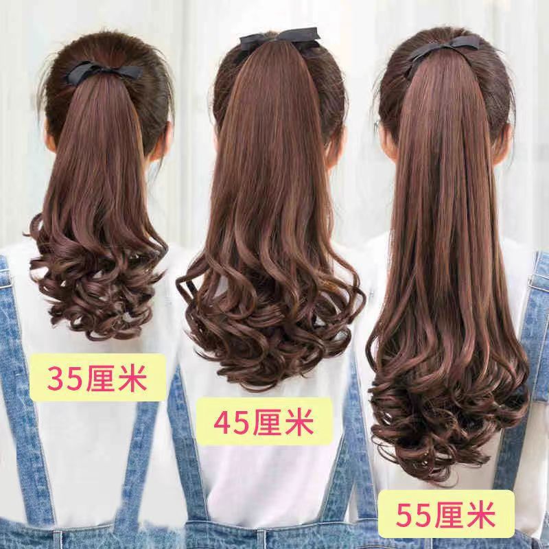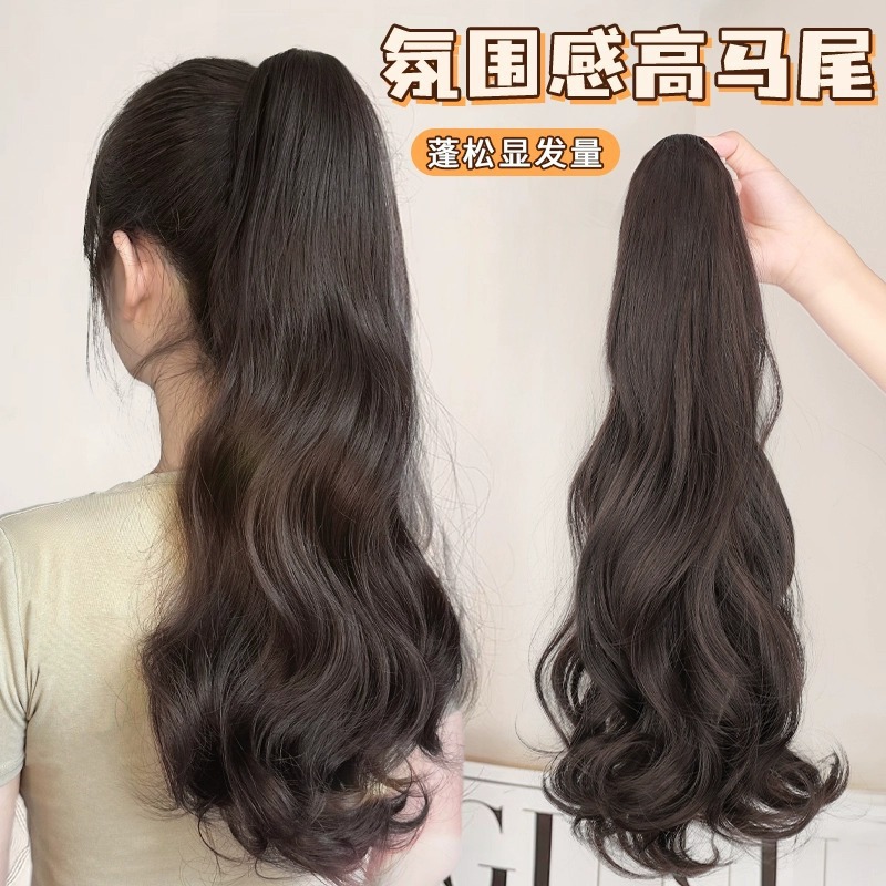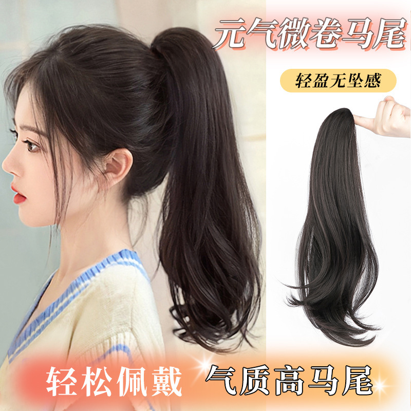 女性用ポニーテールウィッグ、マイクロカーリング、ナチュラルロングヘア、インターネットセレブ三つ編み、模擬人毛、ロングカーリーヘア、偽ポニーテール、卸売