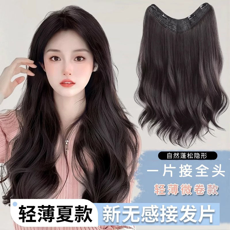 シミュレーションヘアピース、大きなウェーブ、長い巻き毛、ワンピースインビジブル増毛、ふわふわヘアエクステンション、女性用シミュレーションふわふわヘア