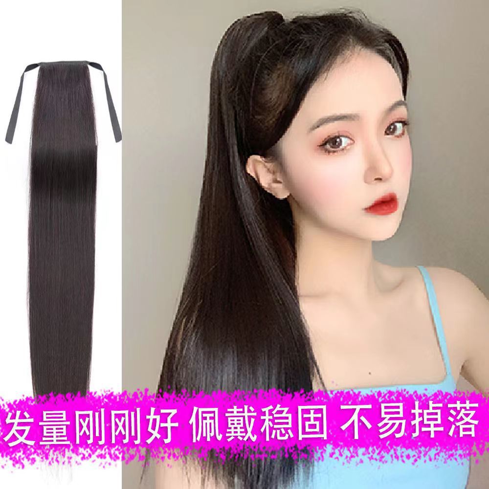 Xuchang ポニーテールウィッグ女性用ストラップオンストレートポニーテールストレートヘアインターネット有名人 Douyin 高温シルクロングストレートヘアウィッグ