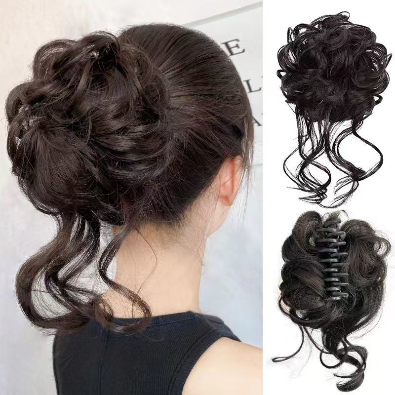 女性用ウィッグ、ヘアクリップ、ヘアゴム、ボールヘア、ヘアピン、ショートカーリーヘア、ヘアクリップ、ふわふわヘアゴム