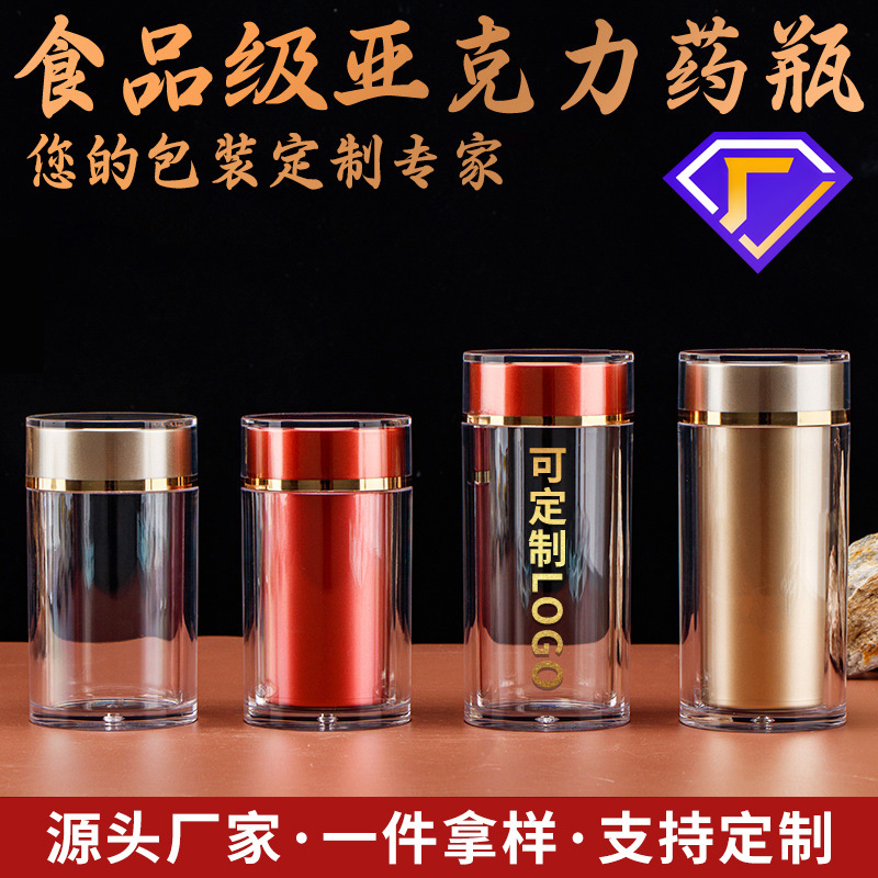 プラスチックボトルアルミキャップ包装瓶印字高級アクリル瓶漢方薬材保健食品薬品粉末密封缶
