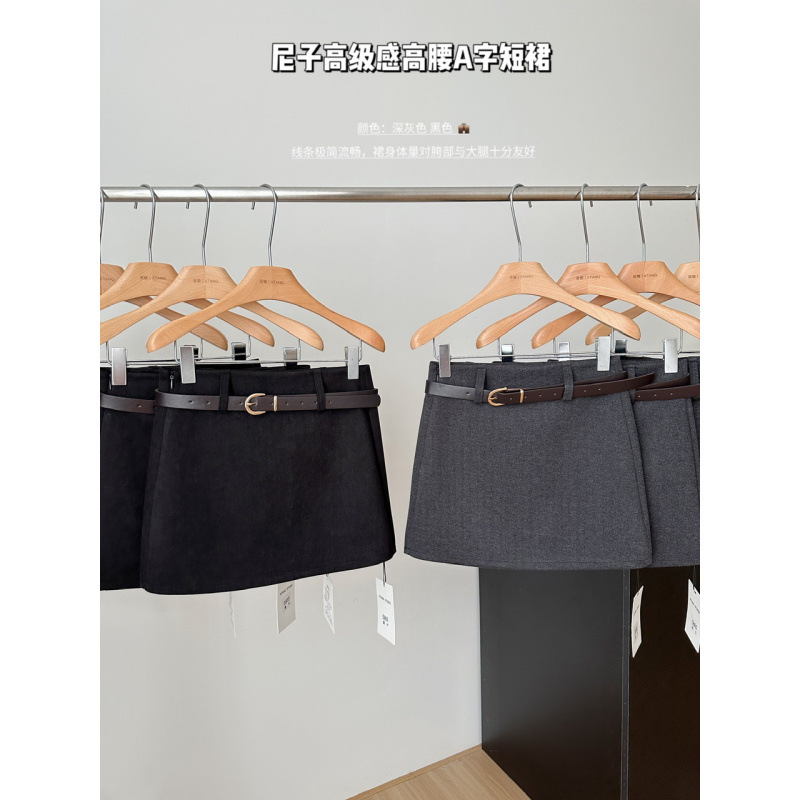 时尚百搭灰色毛呢半身裙女秋冬新款高腰显瘦a字裙辣妹防走光短裙