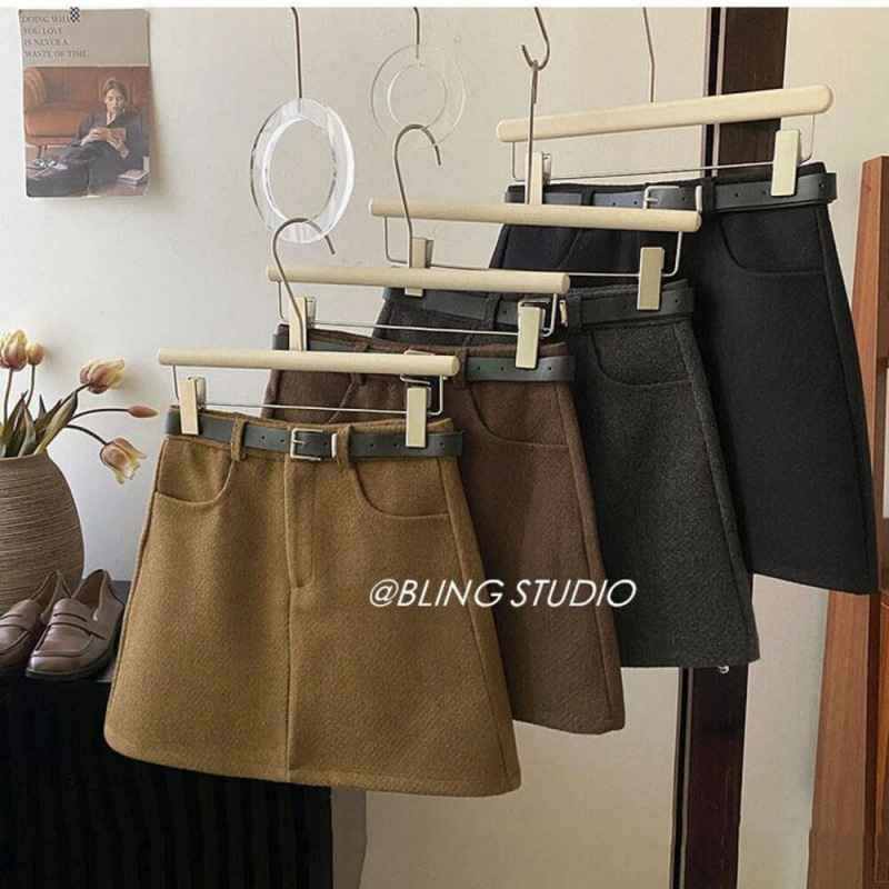 韩系毛呢半身裙女2024秋冬新款高腰显瘦防走光A字包臀裙呢子短裙