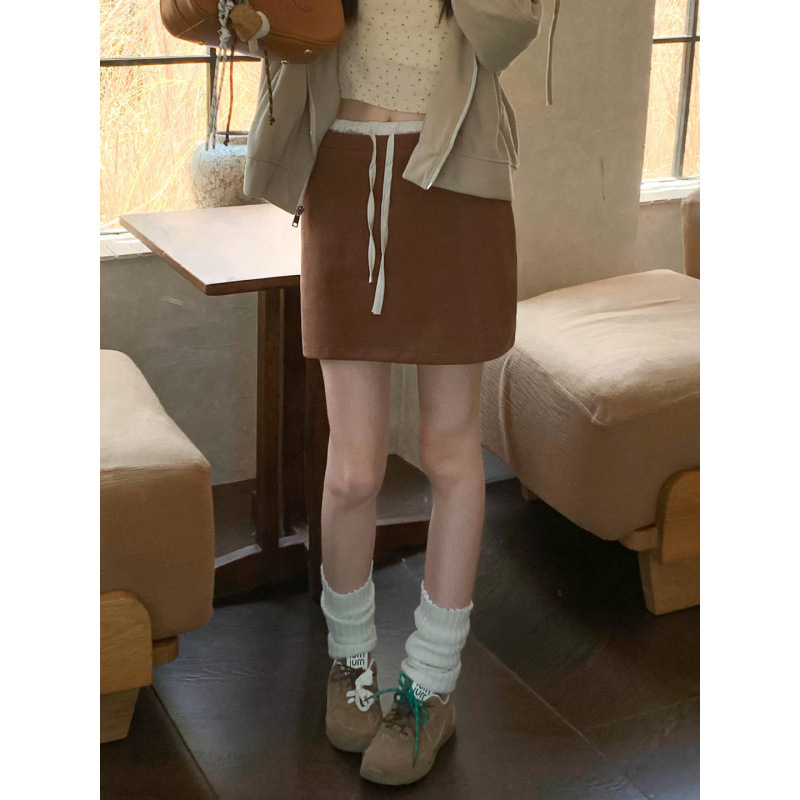 复古咖色半身裙女早秋高腰显瘦褶皱防走光包臀裙小个子百搭短裙