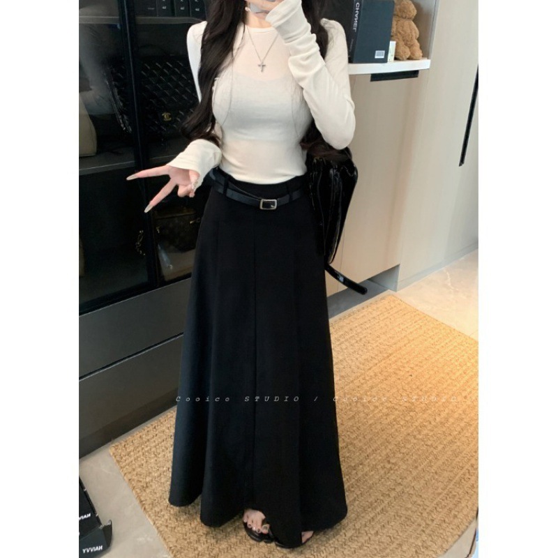 黑色百搭西装A字裙女夏季薄款小个子气质半身裙高腰显瘦垂感长裙