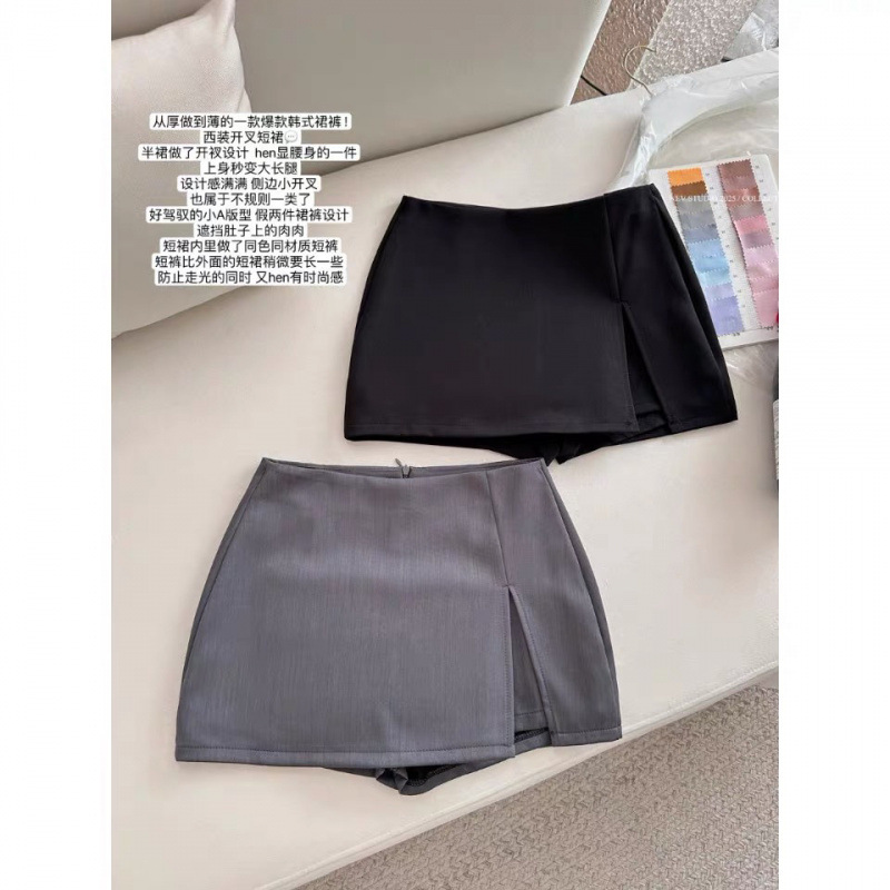 侧开叉灰色半身裙女2025春夏高腰显瘦防走光A字包臀短裙西装裤裙