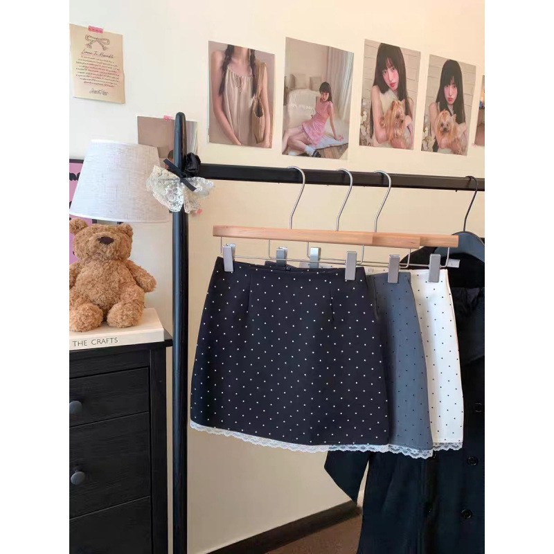 韩系蕾丝拼接波点半身裙女2025春夏新款防走光高腰包臀裙A字裙子