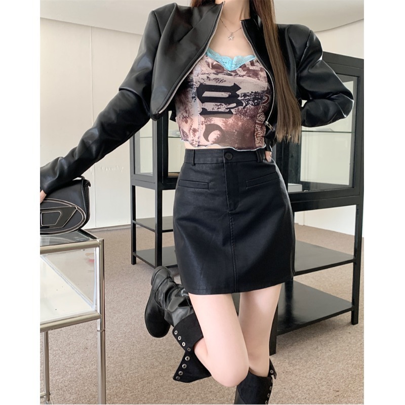 辣妹黑色PU皮裙半身裙女秋季新款高腰显瘦百搭包臀裙防走光短裙子