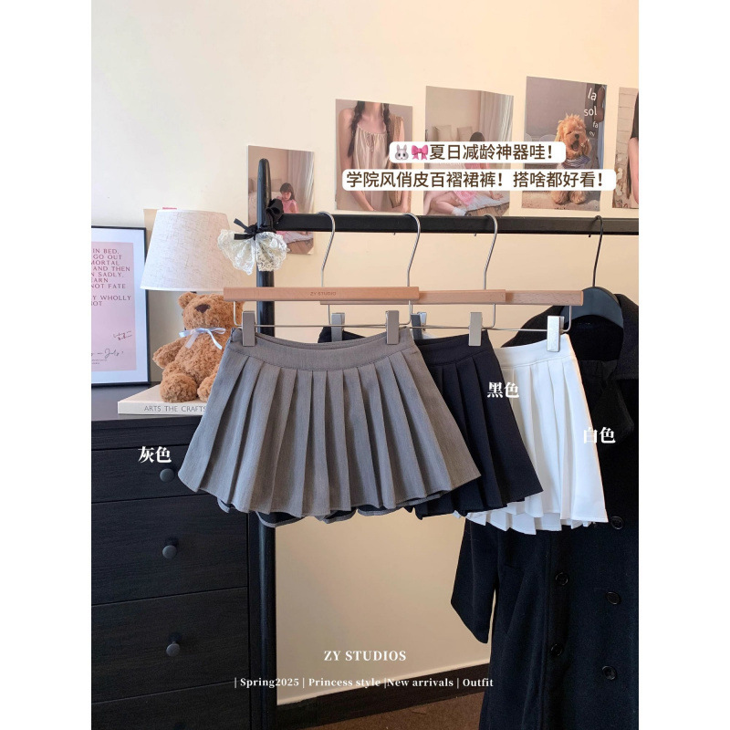 百褶半身裙女小个子夏季高腰显瘦防走光a字裙辣妹灰色百搭短裙子